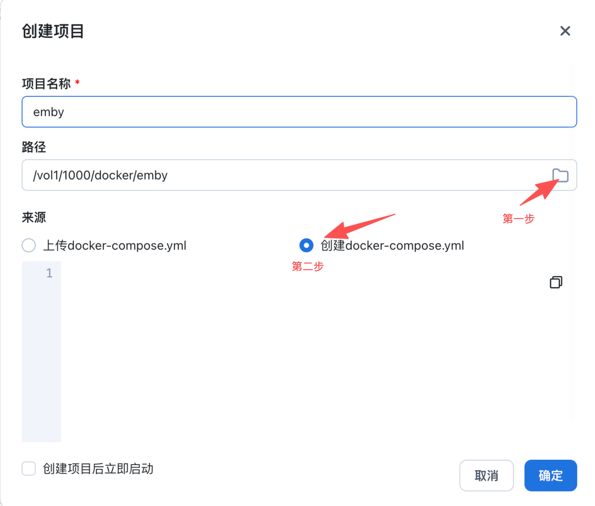 在 docker 文件夹内创建 emby 文件夹,作为 Emby 的程序文件夹,如图: